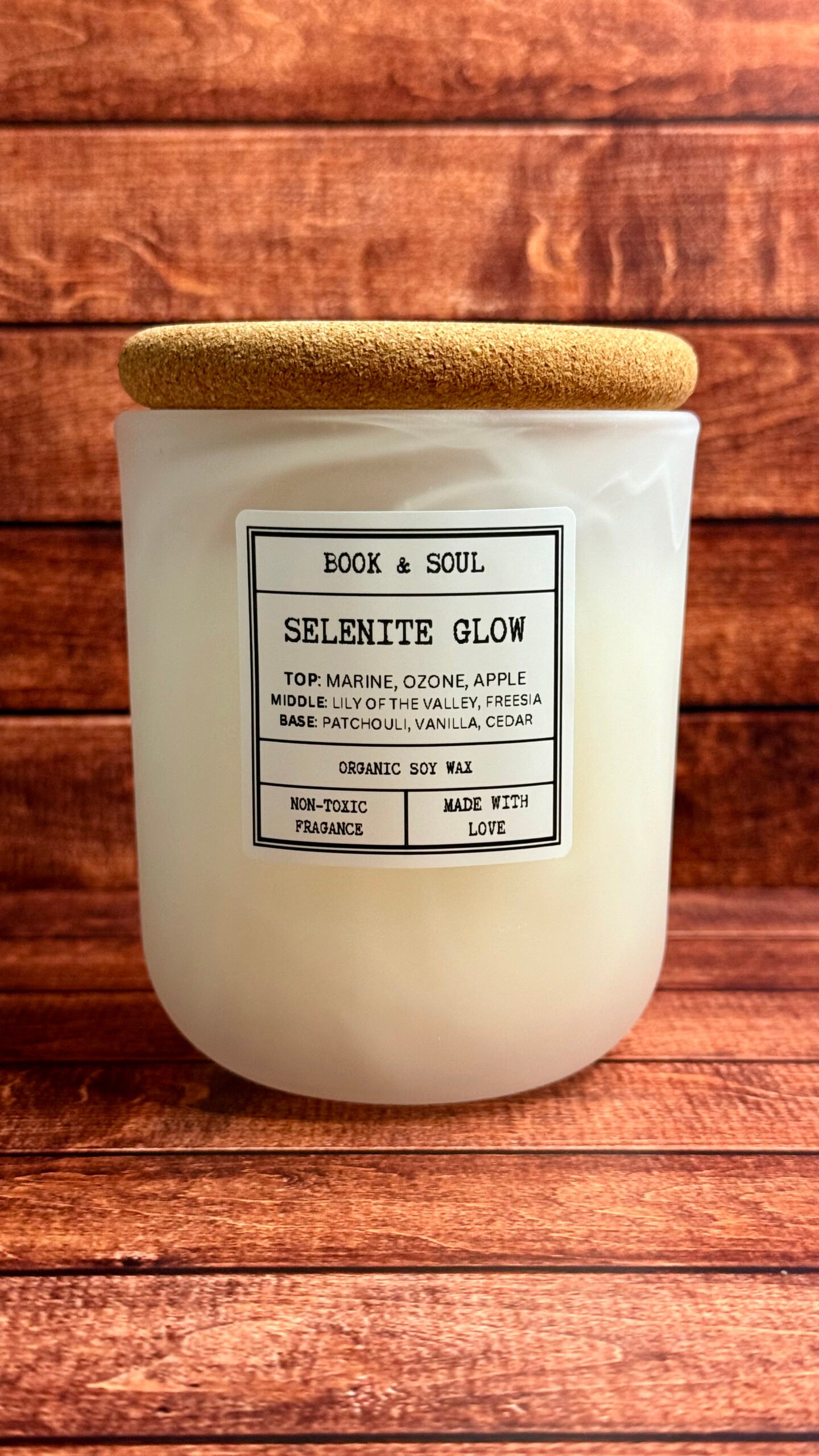 Let the soft radiance of Selenite Glow fill your space with clarity and peace. Crisp marine and ozone notes blend with juicy apple, unfolding into a heart of delicate lily of the valley and freesia. Anchored by grounding patchouli, creamy vanilla, and warm cedar. This candle captures the essence of selenite’s gentle light; soothing, cleansing, and quietly powerful. Perfect for meditation, reflection, or simply bringing a glow of serenity into your home.
